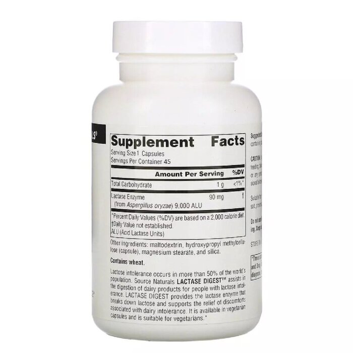 Склад продукту Лактаза Source Naturals Lactase Digest, 45 капсул при непереновимості лактози