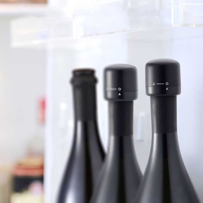 Відкривати пляшки вина та зберігати їхню свіжість стане набагато простіше з пробкою Semi Wine Stopper в елегантному чорному кольорі. Цей аксесуар стане ідеальним помічником для всіх любителів вина, який допоможе продовжити термін зберігання вина після відкриття пляшки.
