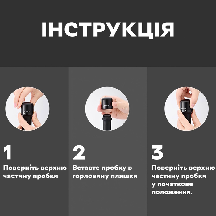 - Універсальна сумісність: пробка підходить для більшості стандартних пляшок вина, дозволяючи зберегти смак та аромат улюбленого напою.