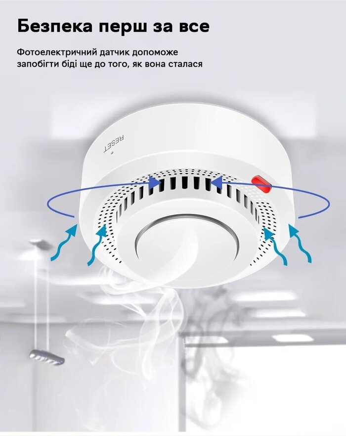 Wifi датчик диму Tuya Smoke Detector – це датчик диму, що працює через Wi-Fi з можливістю виявлення диму в приміщенні, вбудованою сиреною та повідомленнями на смартфон.