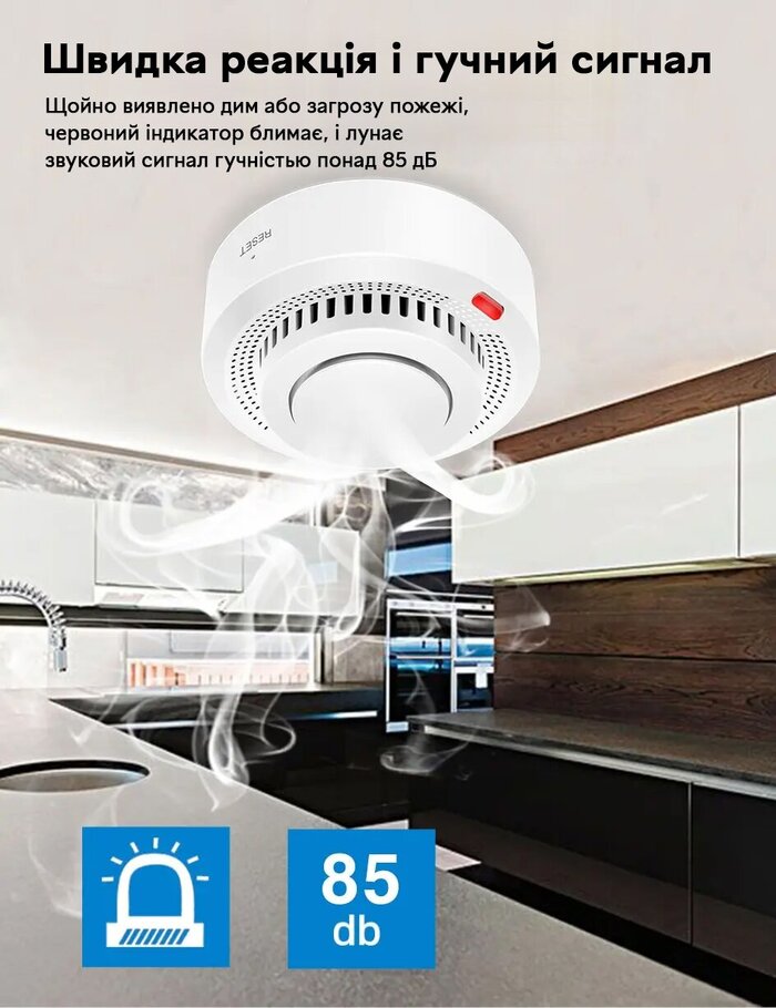 Опис Wifi датчик диму Tuya Wifi Smoke Detector з сиреною та оповіщенням на смартфон